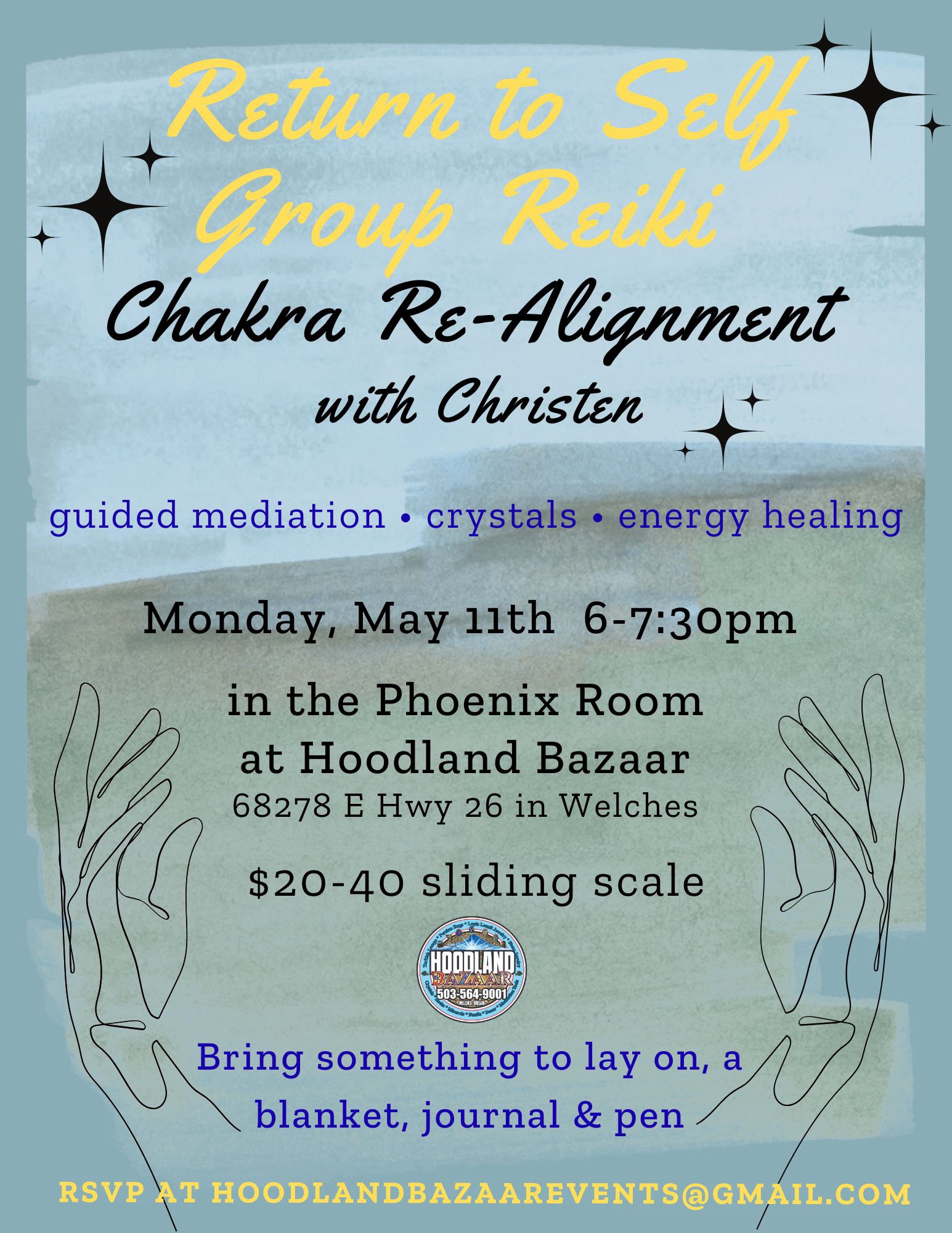 I offer Sound Baths & Group Reiki at Hoodland Bazaar in Welches, OR:
